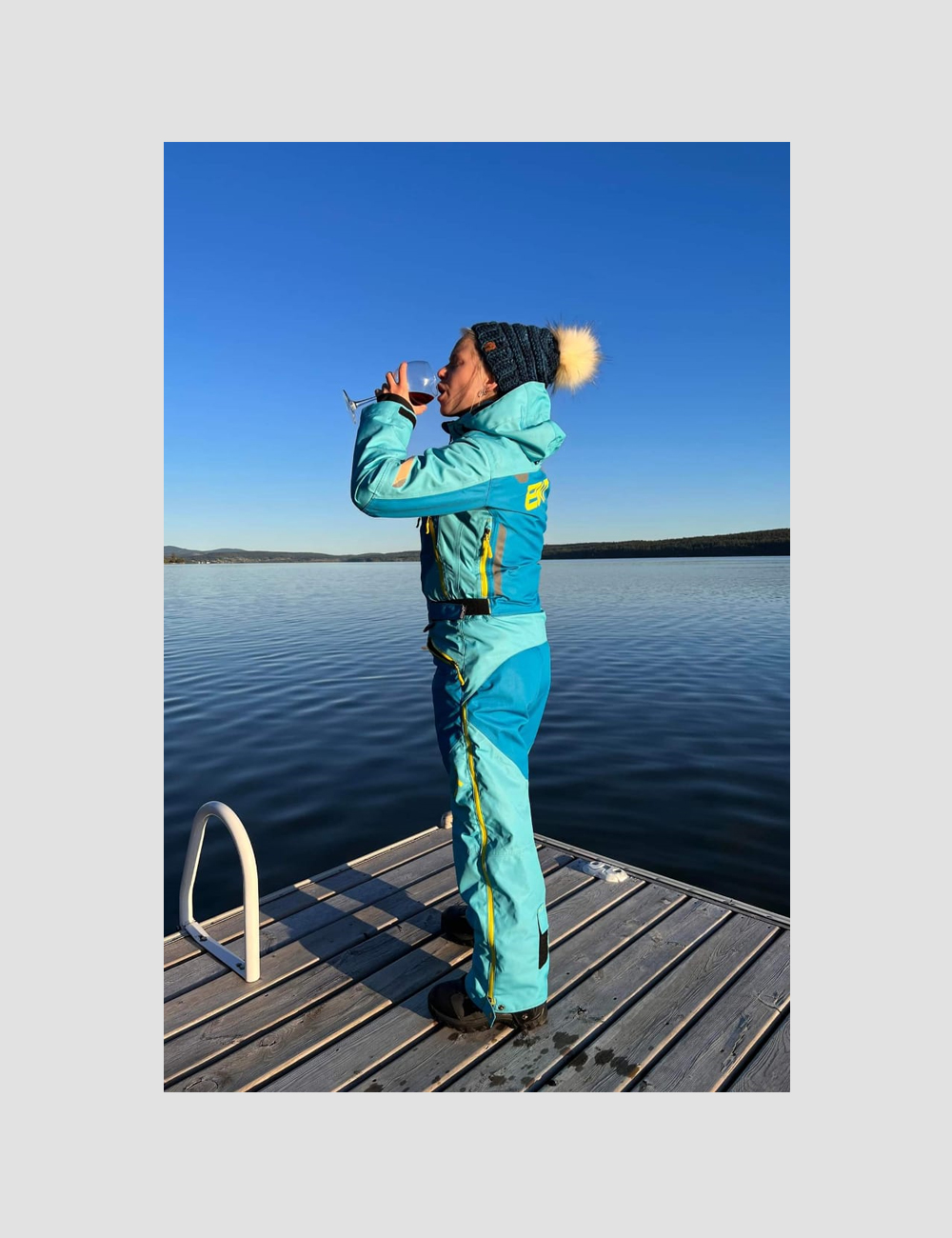 This Ladies Epic Ana Suit is made from durable, three-layer, 30k 30k fabric. It has a removable hood with YKK water resistant aqua guard zippers. It has air vents with Snow Frog mesh at shoulder, legs, and under arm. Cuffs are also snow proof. Pockets are located on chest, left arm, and two at the pant. This suit has snow gators at the ankle with Velcro and snaps. There is also a side adjustment with belt. All seams are sealed with a heavy duty tape. Lining is in black mesh. Colors are fully customizable and Removable Suspenders.