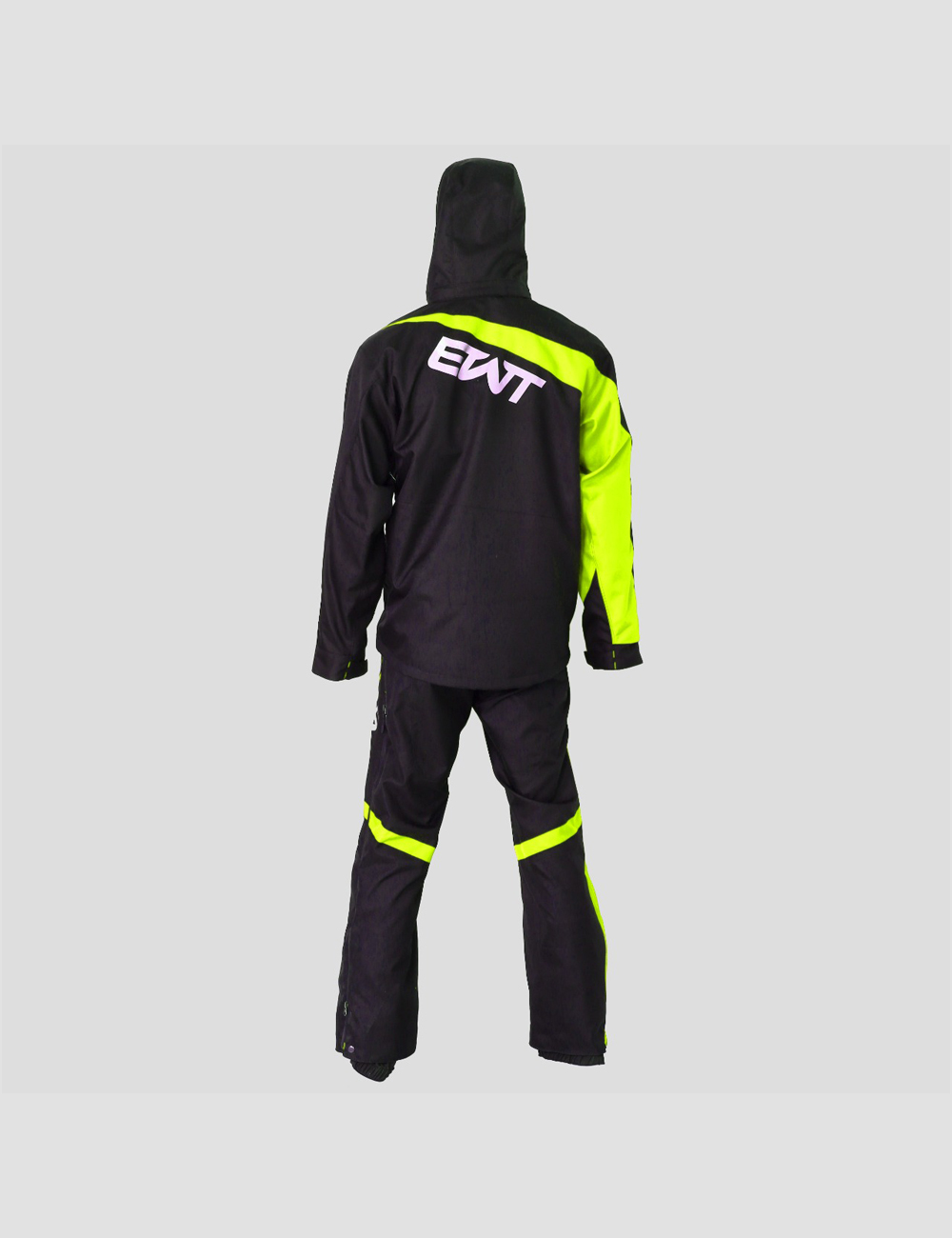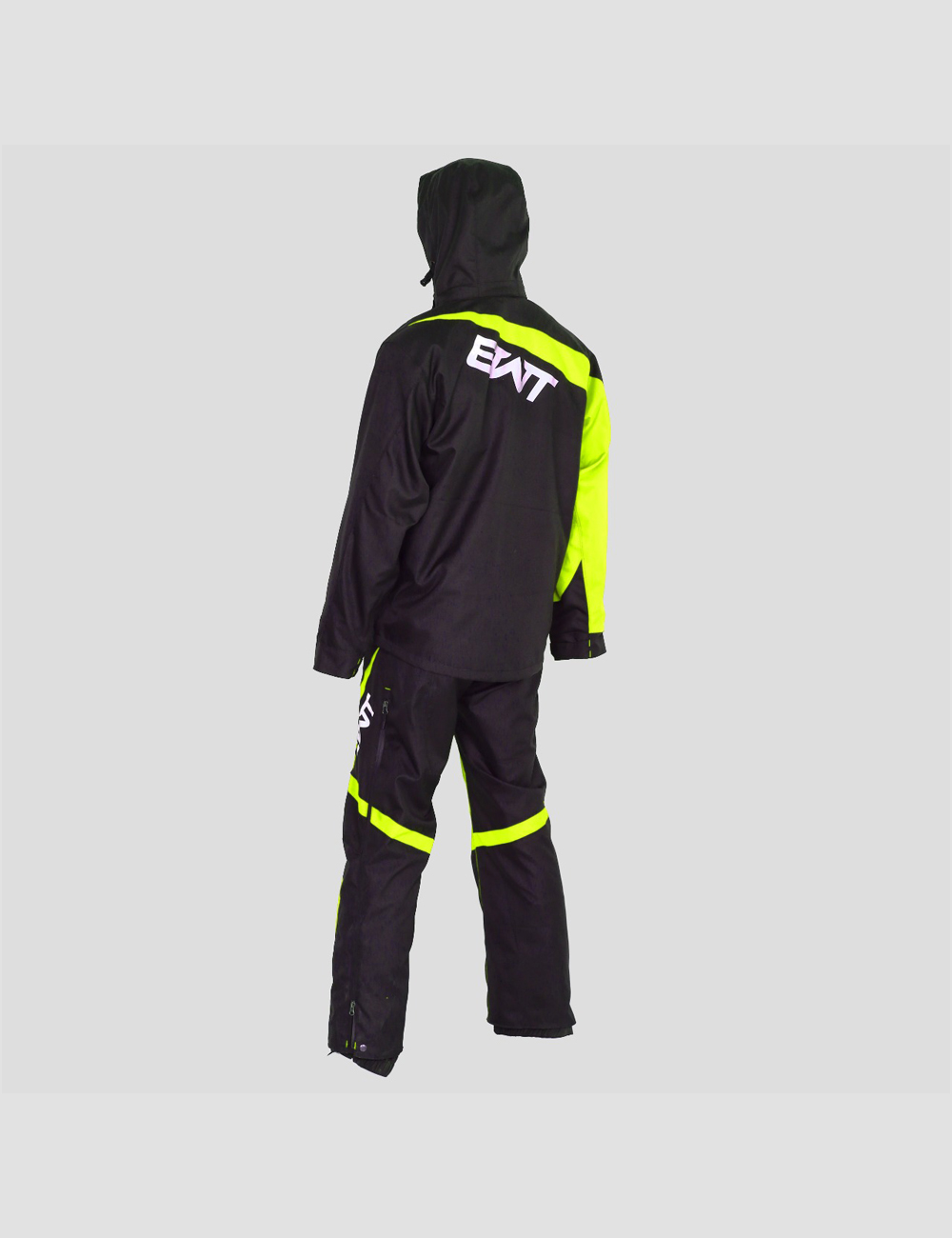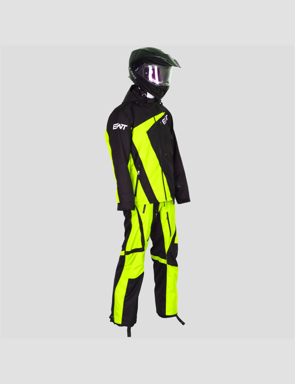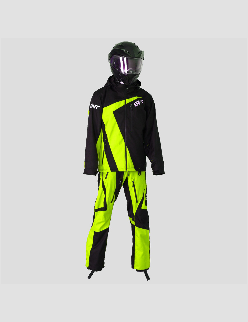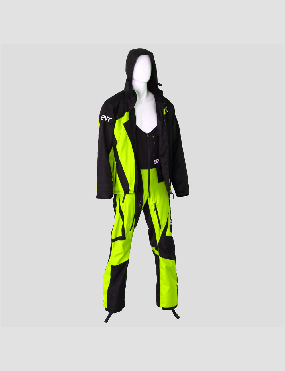 This Tracking Two Piece Suit is made from durable, three layer, 30k 30k fabric. It has a removable hood with YKK water resistant aqua guard zippers. It has air vents with Snow Frog mesh at shoulder, legs, and under arm. Cuffs are also snow proof. Pockets are located on chest, left arm, and two at the pant. This suit has snow gators at the ankle with Velcro and snaps. There is also a side adjustment with belt. All seams are sealed with a heavy duty tape. Lining is in black mesh. Colors are fully customizable and Removable Suspenders.