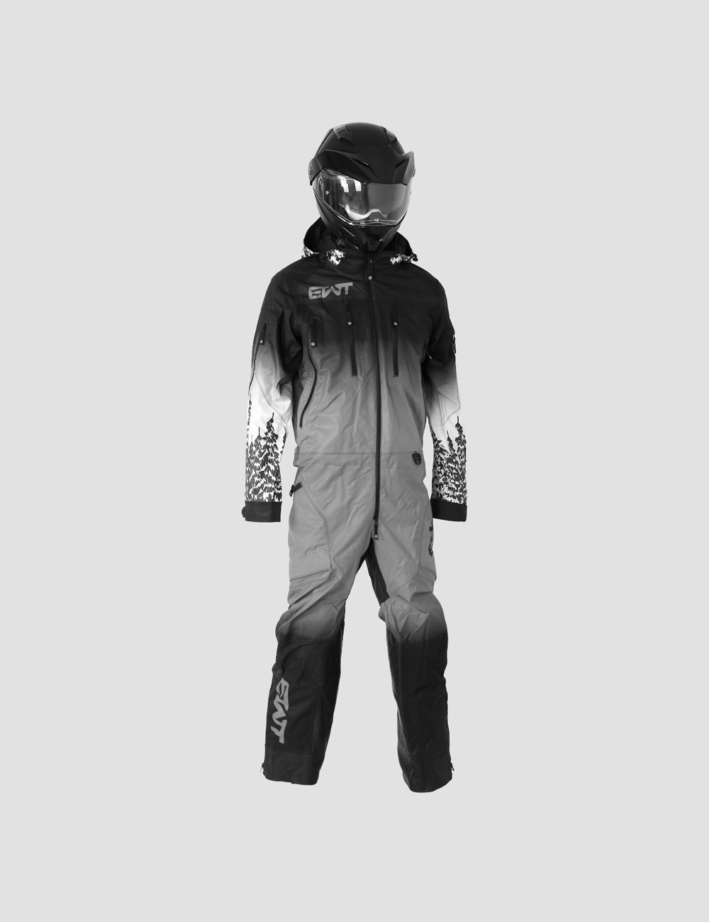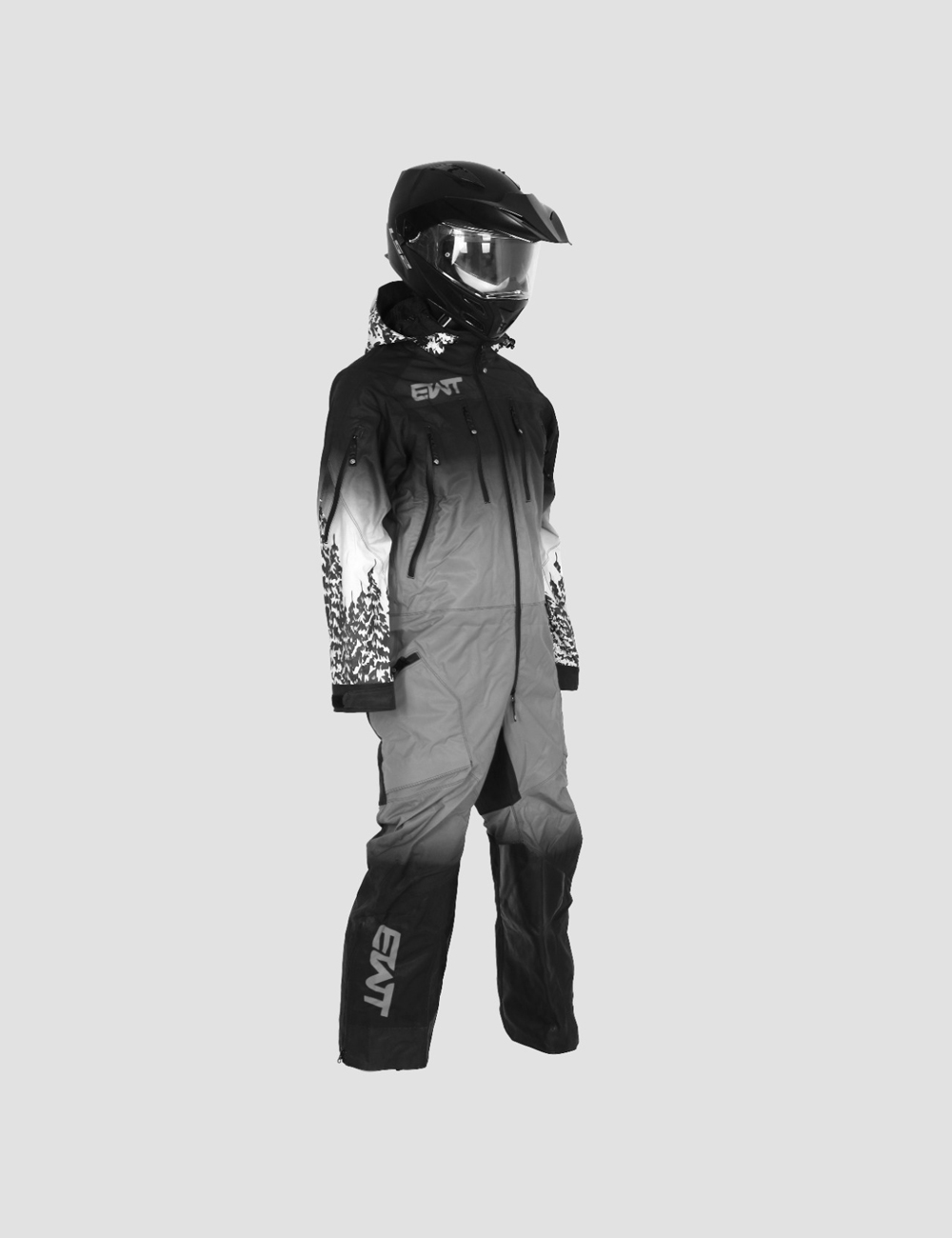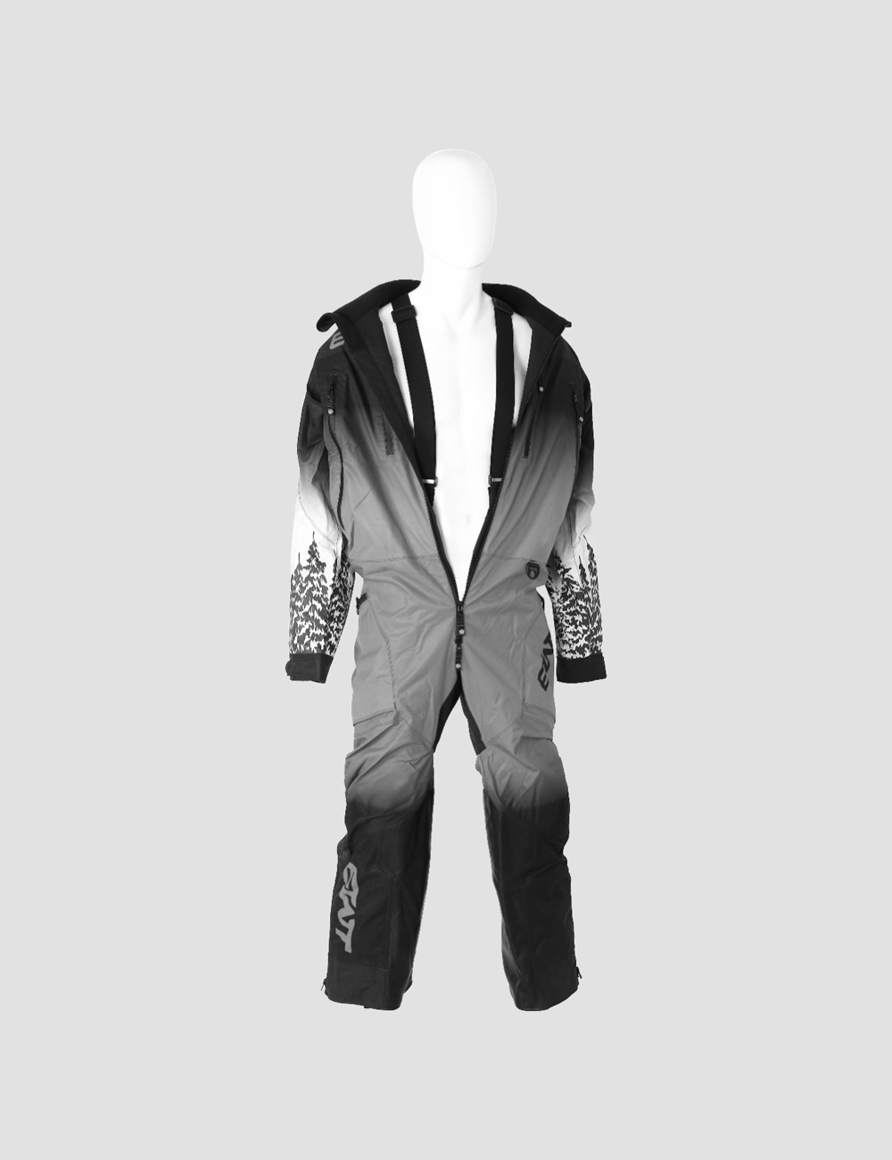 This Snowbike Tundra 1pc Suit is made from durable, three layer, 30k 30k fabric. It has a removable hood with YKK water resistant aqua guard zippers. It has air vents with Snow Frog mesh at shoulder, legs, and under arm. Cuffs are also snow proof. Pockets are located on chest, left arm, and two at the pant. This suit has snow gators at the ankle with Velcro and snaps. There is also a side adjustment with belt. All seams are sealed with a heavy duty tape. Lining is in black mesh. Colors are fully customizable and Removable Suspenders.